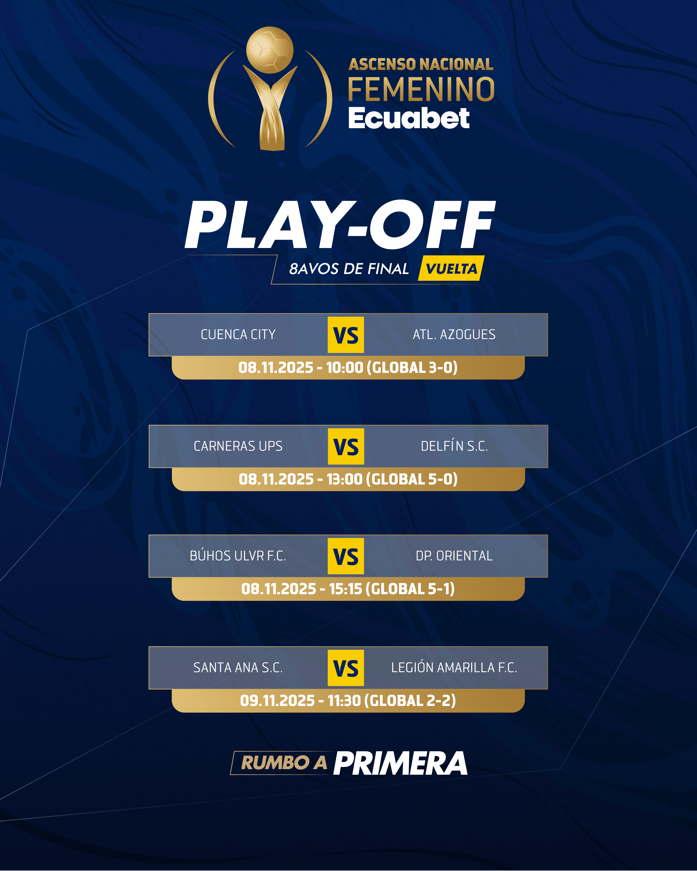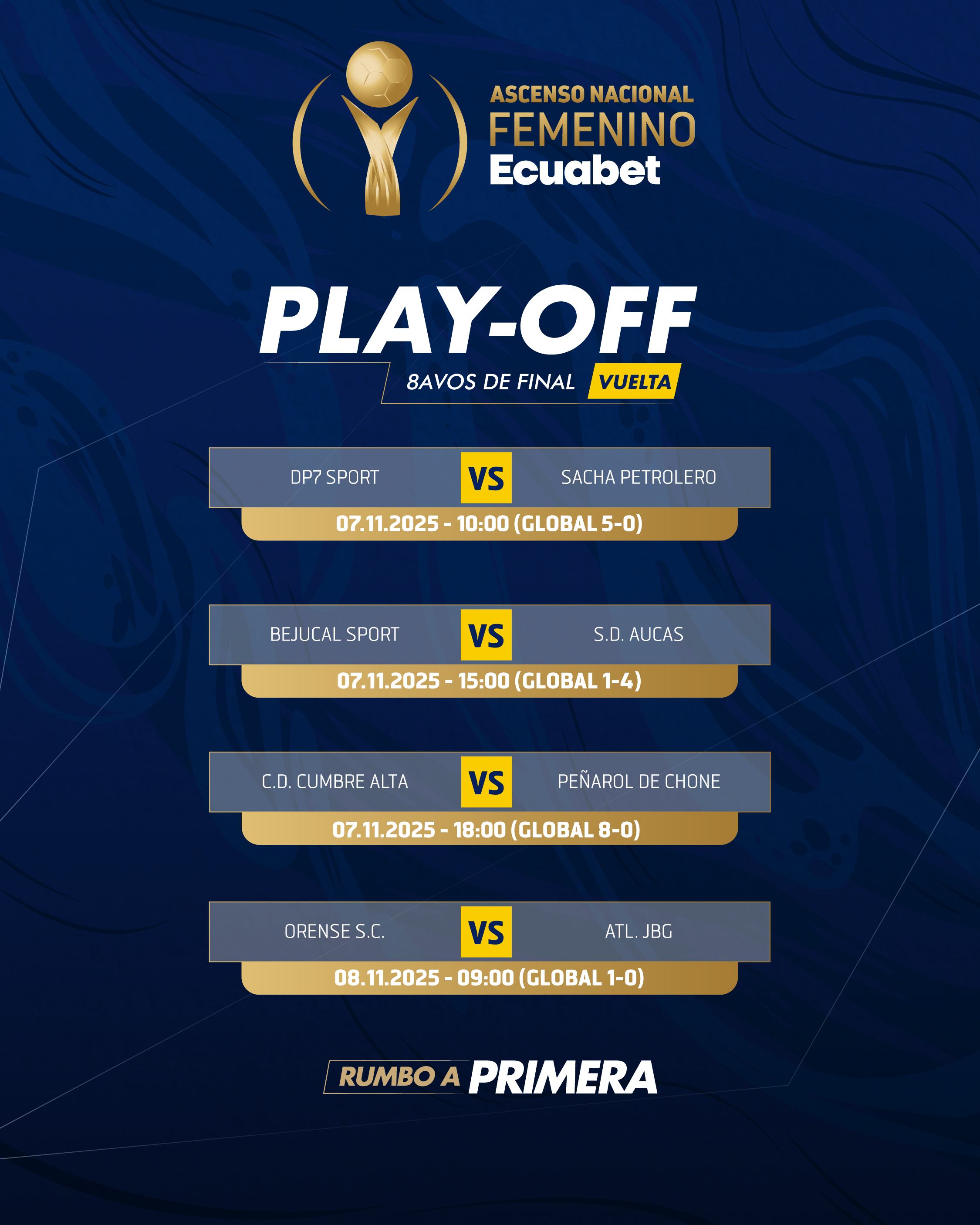 Esta es la programación completa de los partidos de vuelta de los octavos del Ascenso Nacional Femenino Ecuabet 2025.
