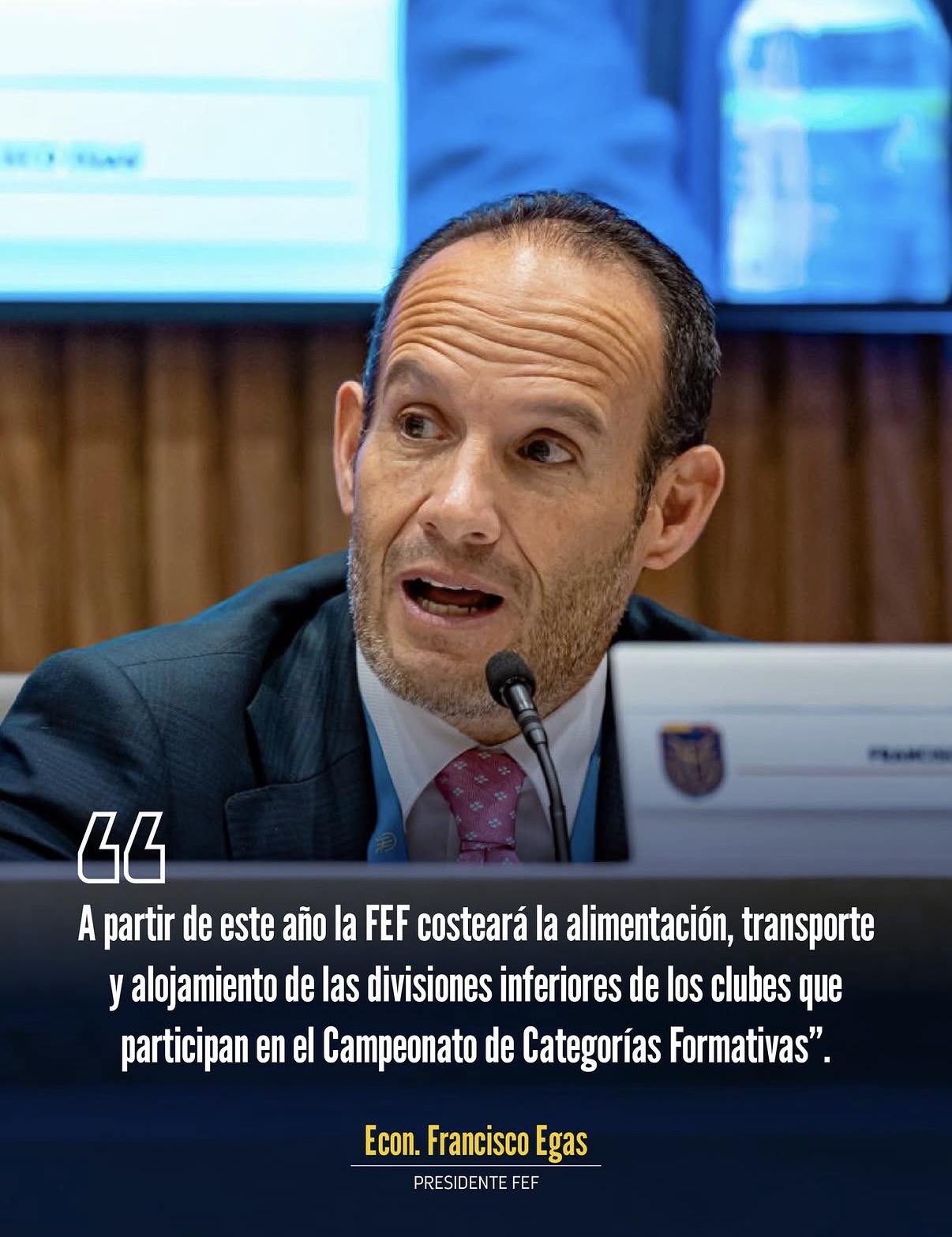 Francisco Egas anunció que, gracias a la buena gestión en la entidad, a partir de este año, la FEF financiará y coordinará la alimentación, transporte y alojamiento de cada una de las categorías que participa en las divisiones formativas.