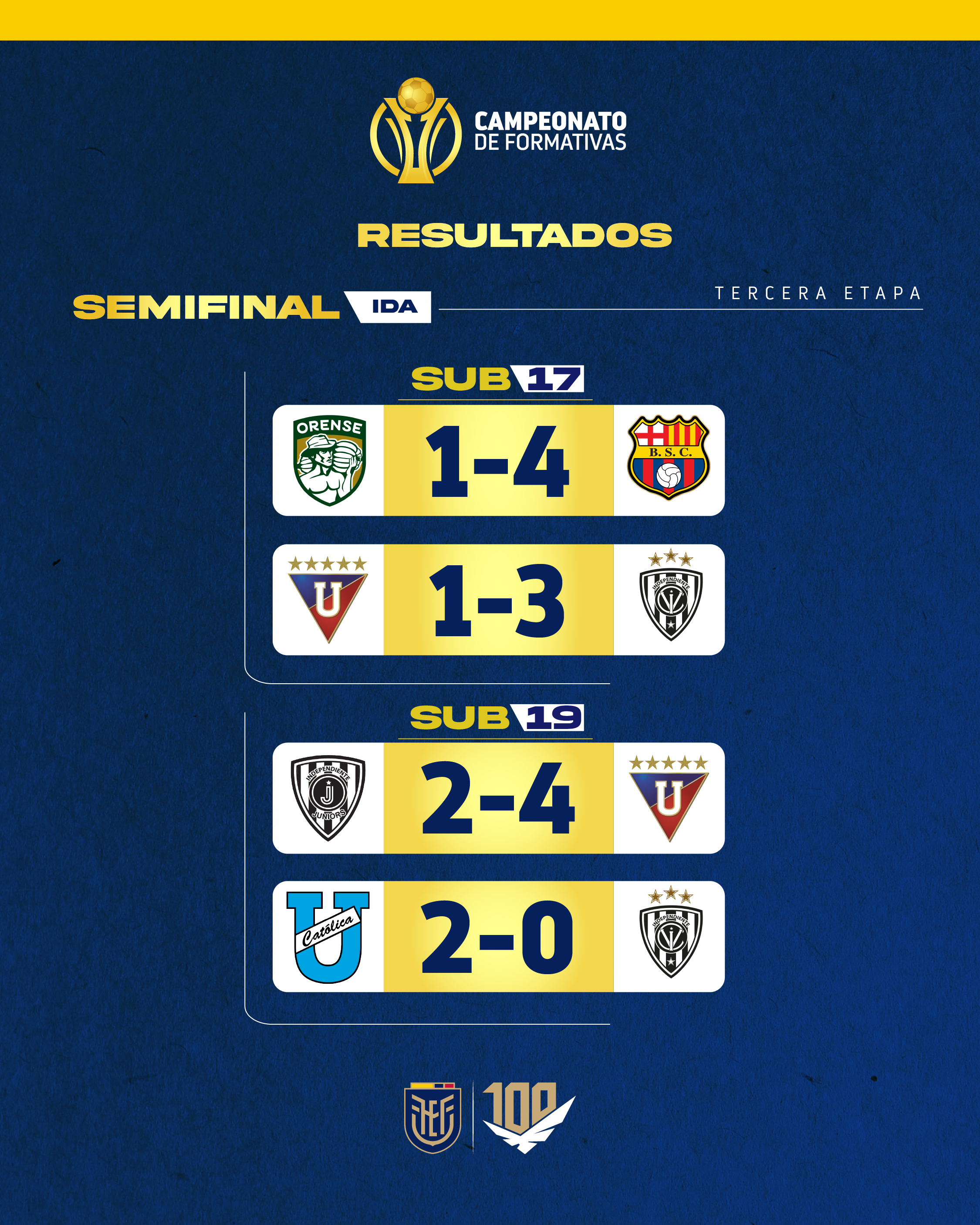 Por la Sub 17, Barcelona y Orense definirán el pase a la final el viernes a partir de las 9h00 en la Casa Finca de Samborondón; y el sábado, a las 11h30, Independiente del Valle y Liga Deportiva Universitaria de Quito harán lo propio desde las 11h30.
