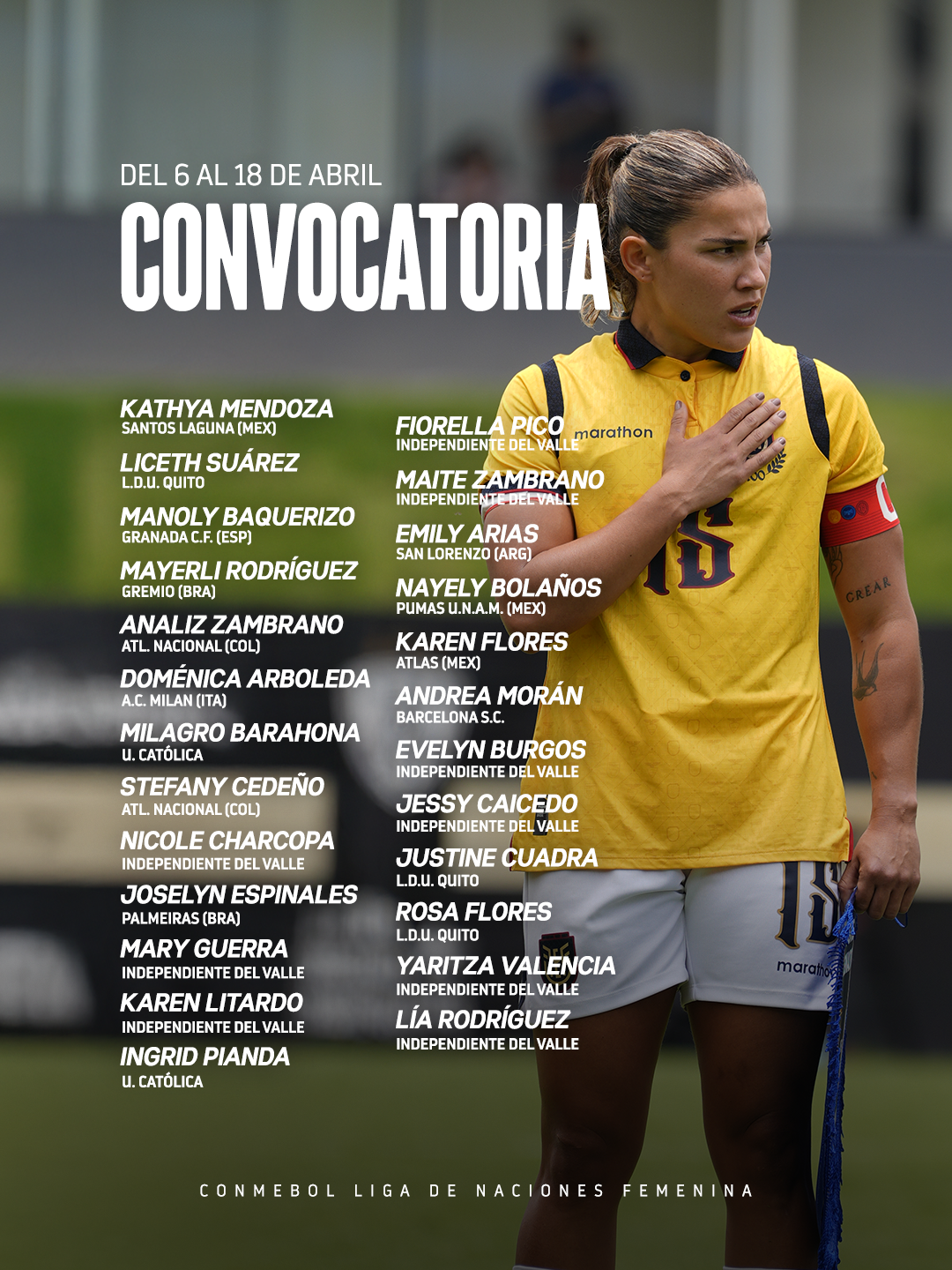 La Tri descansará en la fecha 6, por lo que estos compromisos serán clave en la búsqueda de puntos para escalar posiciones.Esta convocatoria responde a la necesidad de dar continuidad al proceso, potenciar el crecimiento del grupo y seguir consolidando una identidad competitiva.
