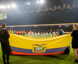 El fútbol femenino ecuatoriano, representado por Ligia Moreira en exhibición a propósito de la Copa del Mundo de la FIFA