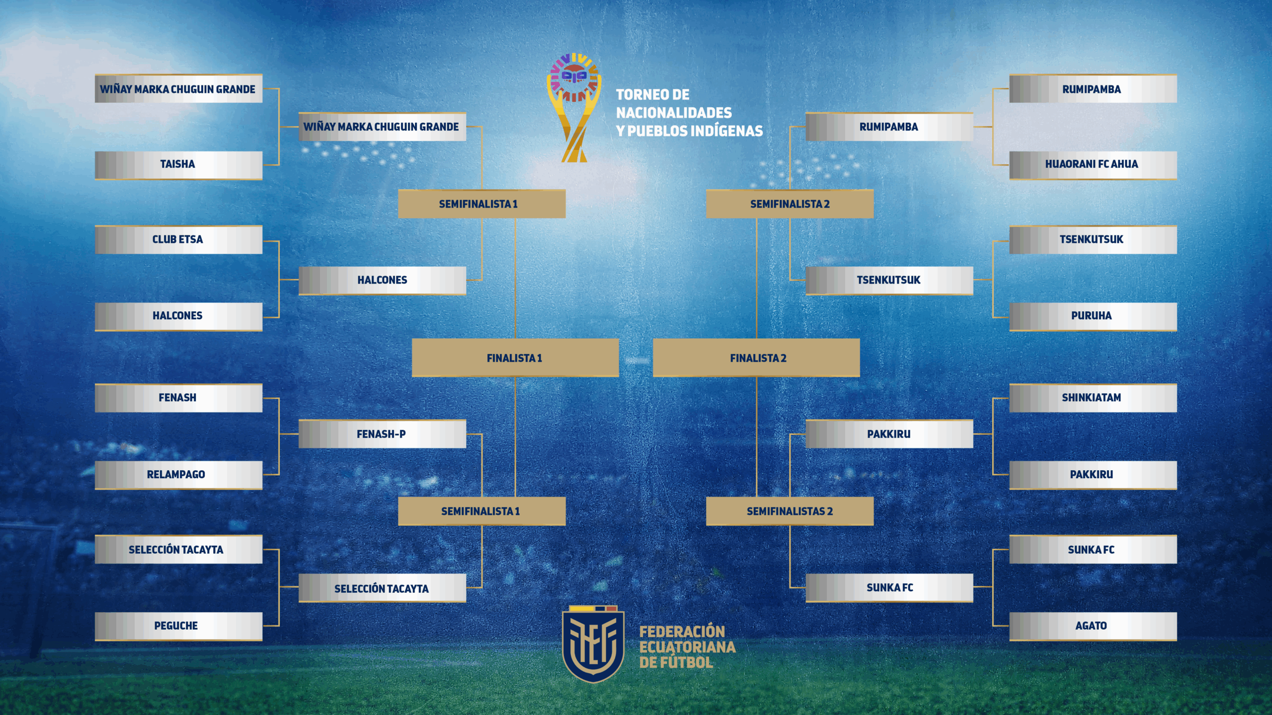 Este es el cuadro de enfrentamientos de la Copa de Nacionalidades y Pueblos Indígenas del Ecuador, organizado por la Federación Ecuatoriana de Fútbol, a través de su Comisión de Competiciones de Fútbol Aficionado (COMFA).